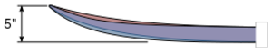 However, the rate of change of the curve from the rocker apex to the endpoints can vary greatly. For example, the curve may be relatively even over the entire distance from apex to nose tip, or may be very subtle and flatter through the middle of the board, then accelerate rapidly in the last 12 to 18 inches of nose, giving the two boards vastly different performance characteristics, despite the fact that they both may have "five inches of nose rocker."
