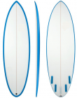 | Shortboard The shortboard surfboard design reinvented high performance surfing in the 1970s and continues to allow surfers to push the boundaries of the sport. The shortboard is usually found at a length of under seven feet long. It will have a greater amount of rocker which allows it to surf in critical sections of the wave. It is most commonly seen with sharp noses, thins rails, and either three or four fins. | |